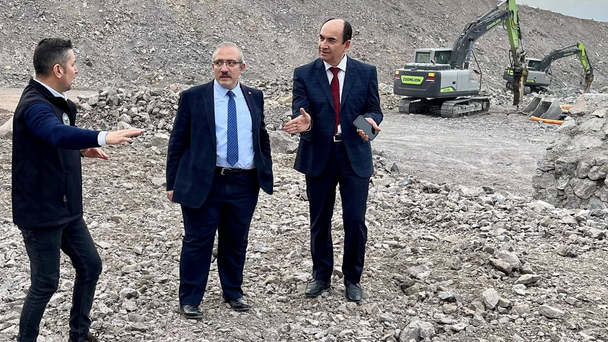 Yönetim Kurulu Başkanı Vali Yardımcısı Yusuf İzzet Karaman ile Gönen Kaymakamı Ahmet Altıntaş altyapı projeleri kapsamında devam eden yol parsel imalat süreçleri başta olmak üzere, taş duvar (istinat) imalatı faaliyetleri ve yürütülen çalışmaları yerinde inceleyerek projedeki gelinen son duruma ilişkin Bölge Müdürü Mehmet Çelik'ten bilgi aldı.