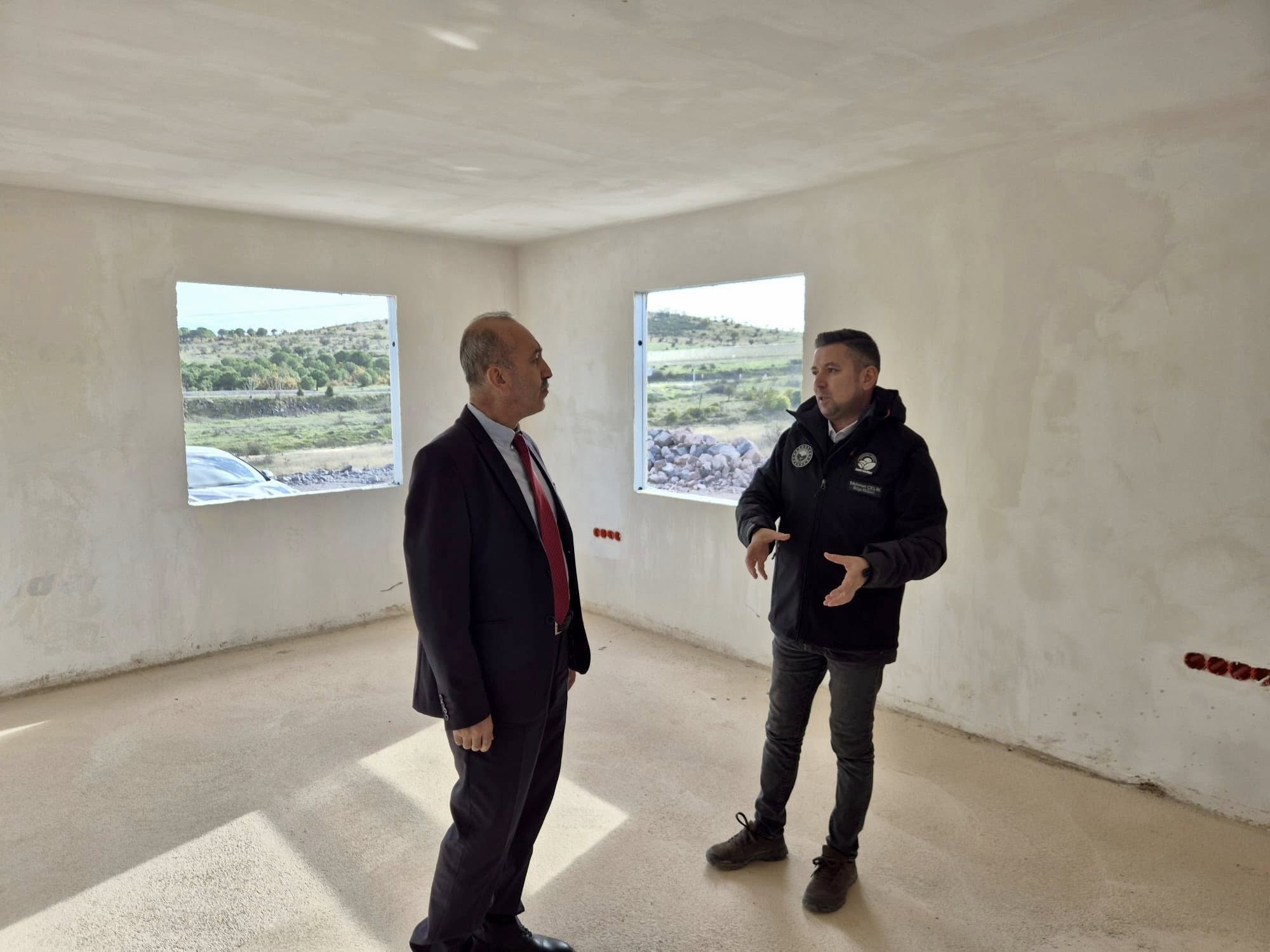 Yönetim Kurulu Başkan Vekili, İl Tarım ve Orman Müdürü Dr. Hüseyin Düzgün, Bölge Müdürü Mehmet Çelik ile birlikte yapımı devam eden Gönen Sera Organize Tarım Bölgesi Hizmet Binası ile peyzaj çalışmalarını yerinde inceledi.