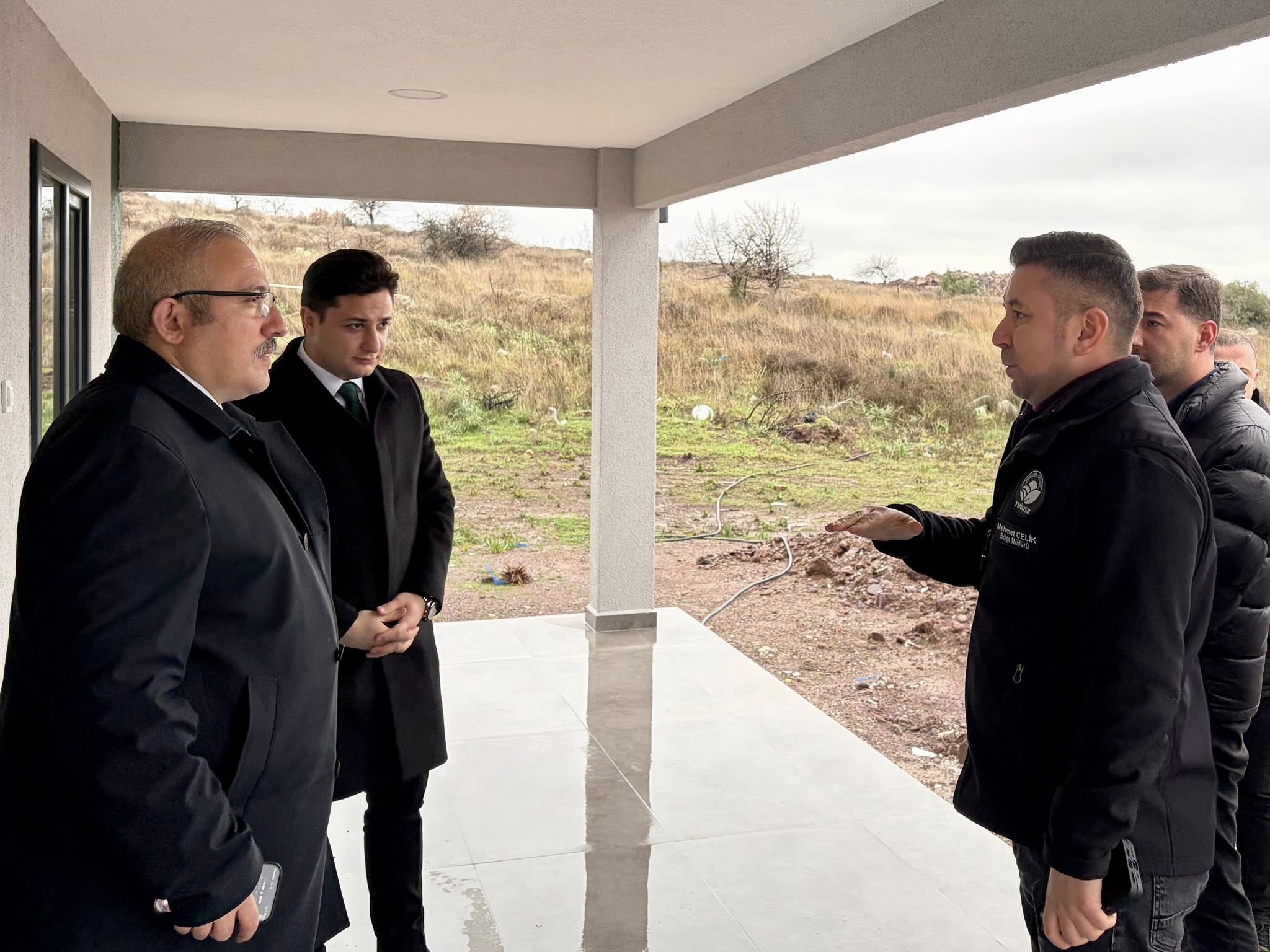 Ziyarette kazı, dolgu, yol, parsel, taş duvar, altyapı proje çalışmaları, soğuk su araştırma sondajı ve gelinen mevcut durum hakkında Bölge Müdürü Mehmet Çelik'ten bilgi aldı.