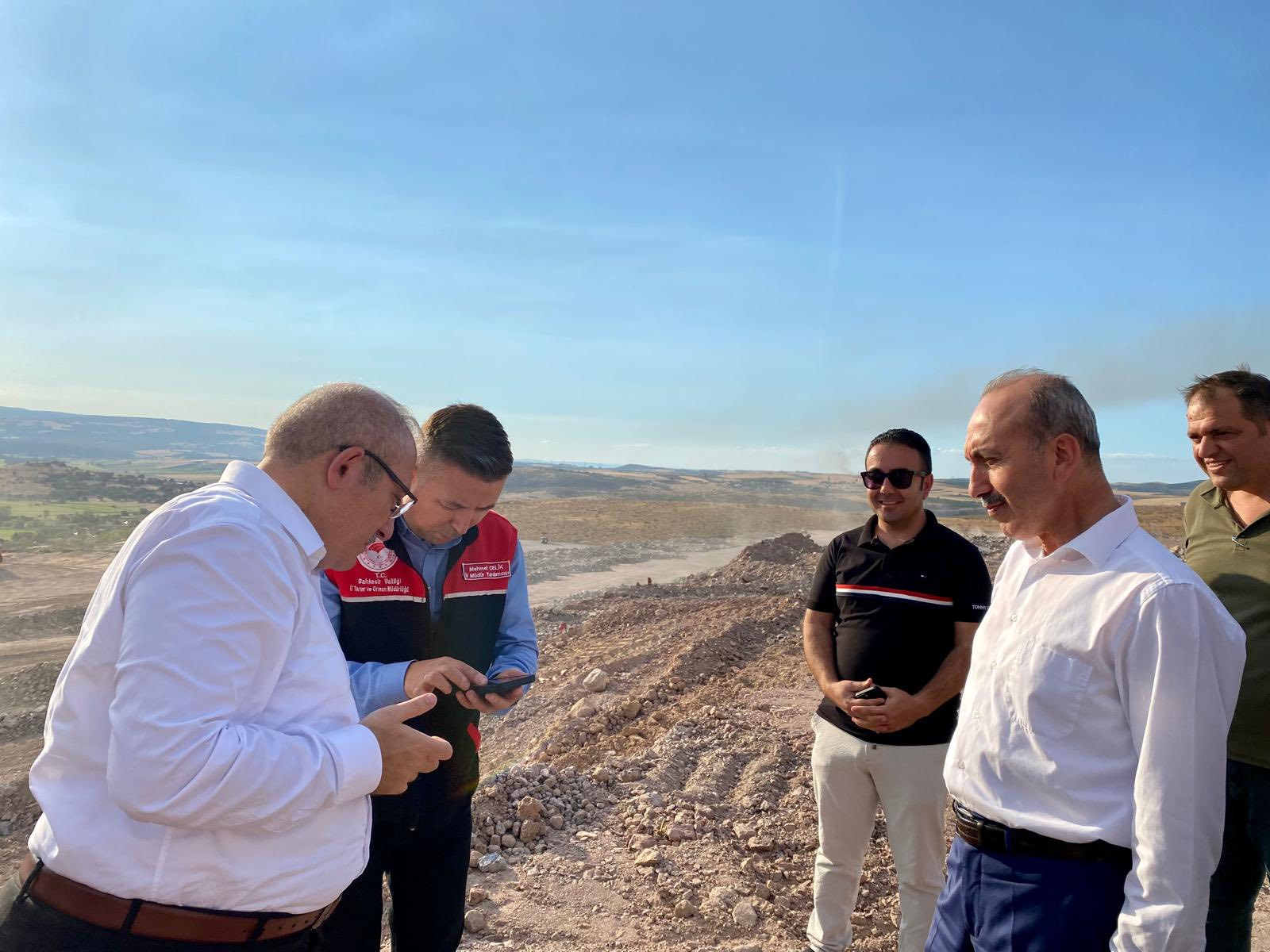 Sürdürülebilir ve modern tarım anlayışıyla üretime katma değer sağlayacak olan seraların devam eden altyapı çalışmaları kapsamında Yönetim Kurulu Başkanı Vali Yardımcısı Yusuf İzzet Karaman, Yönetim Kurulu Başkan Vekili İl Tarım ve Orman Müdürü Dr. Hüseyin Düzgün ve Gönen Kaymakamı Ahmet Altıntaş Gönen Sera Organize Tarım Bölgesi proje alanında incelemelerde bulunarak yürütülen çalışmalar hakkında Bölge Müdürü Mehmet Çelik'ten bilgi aldı.